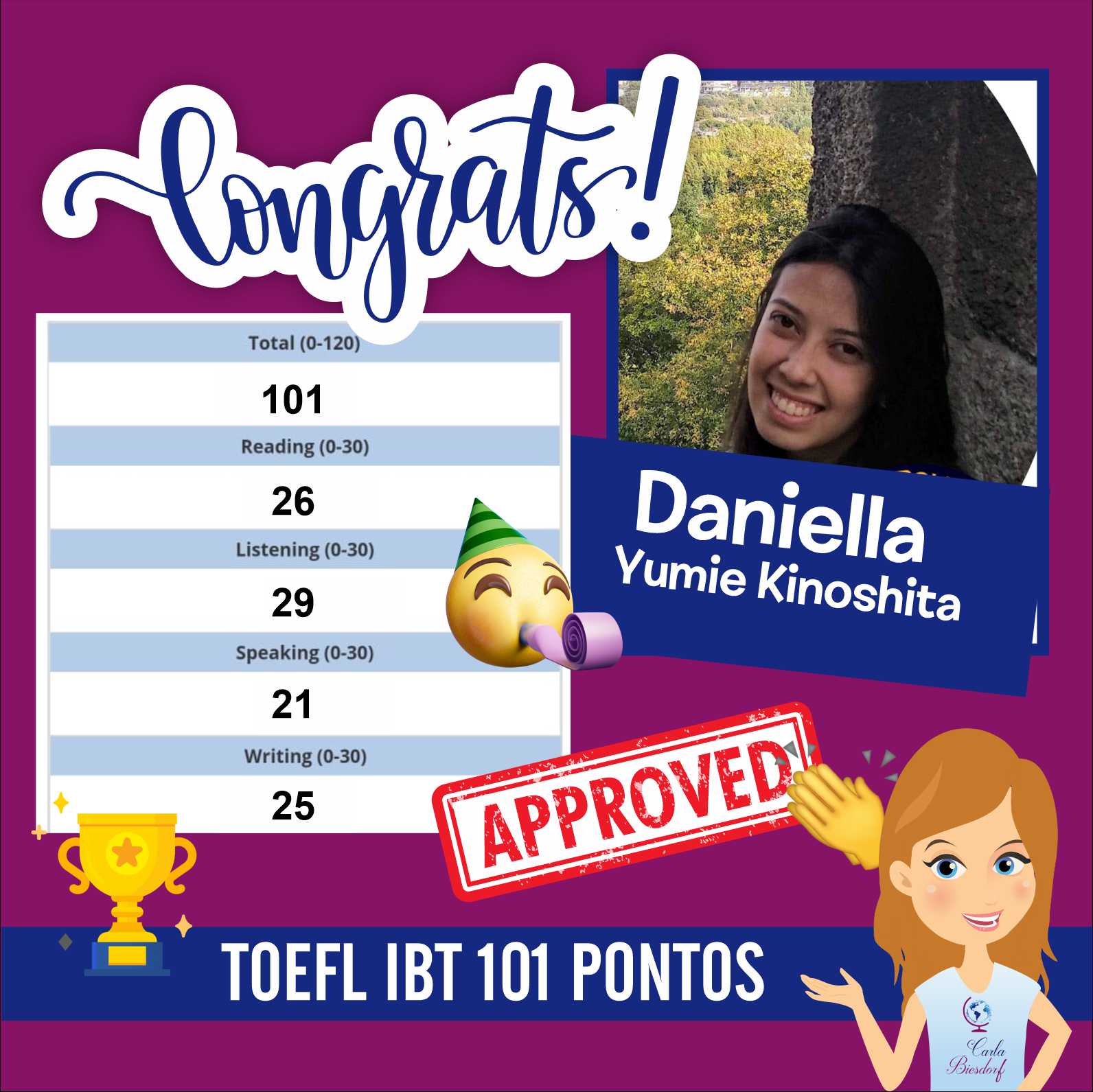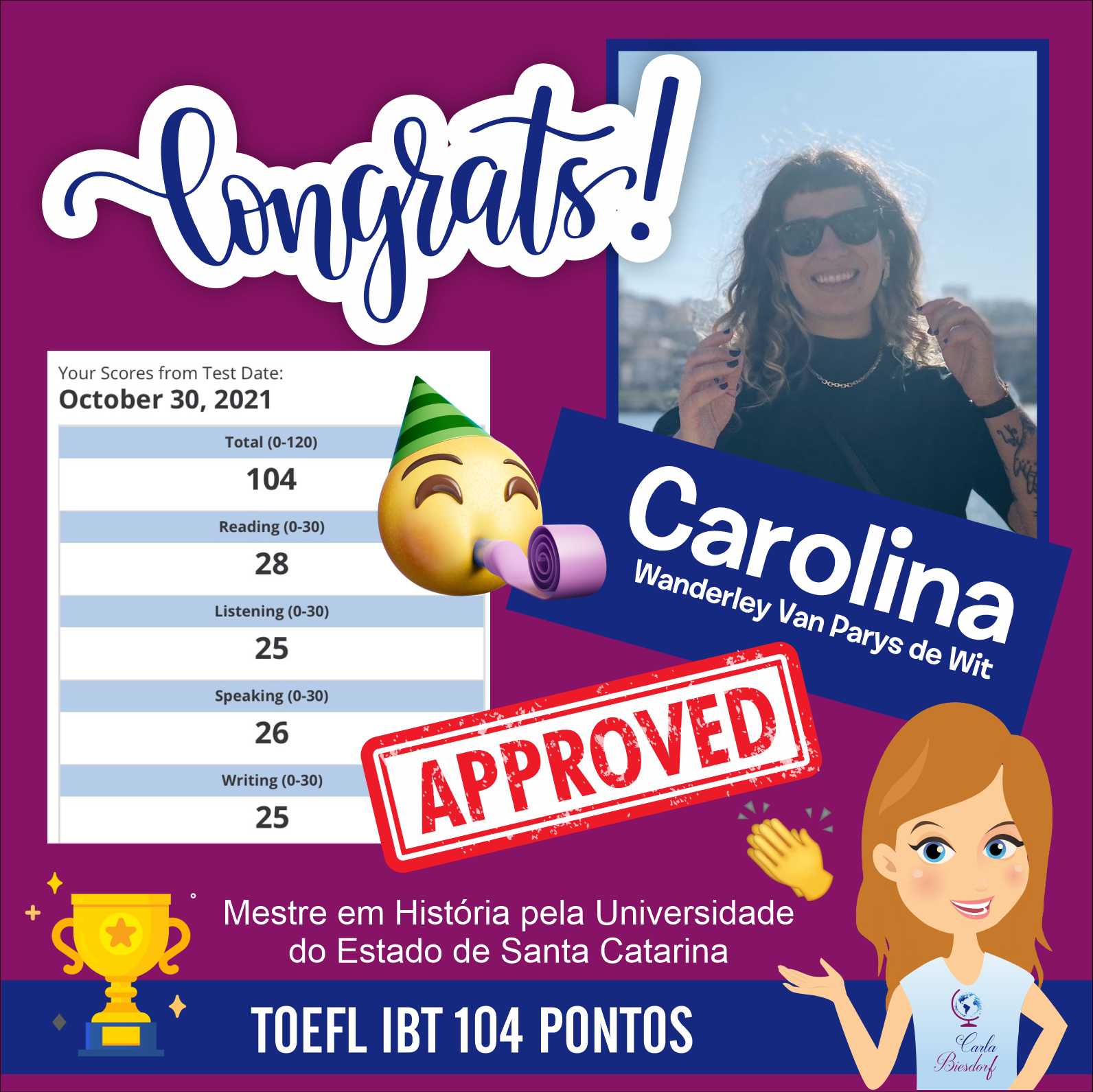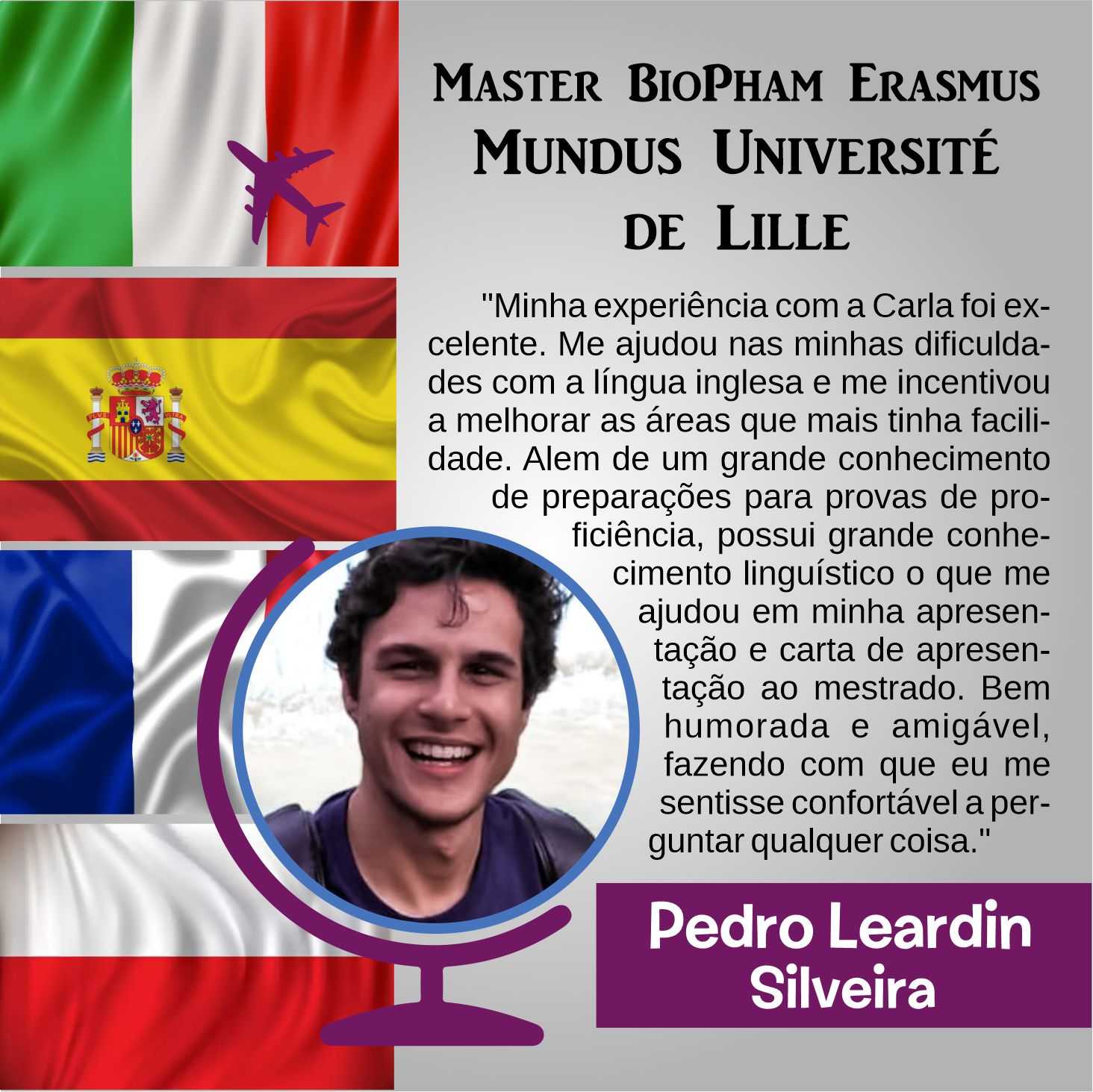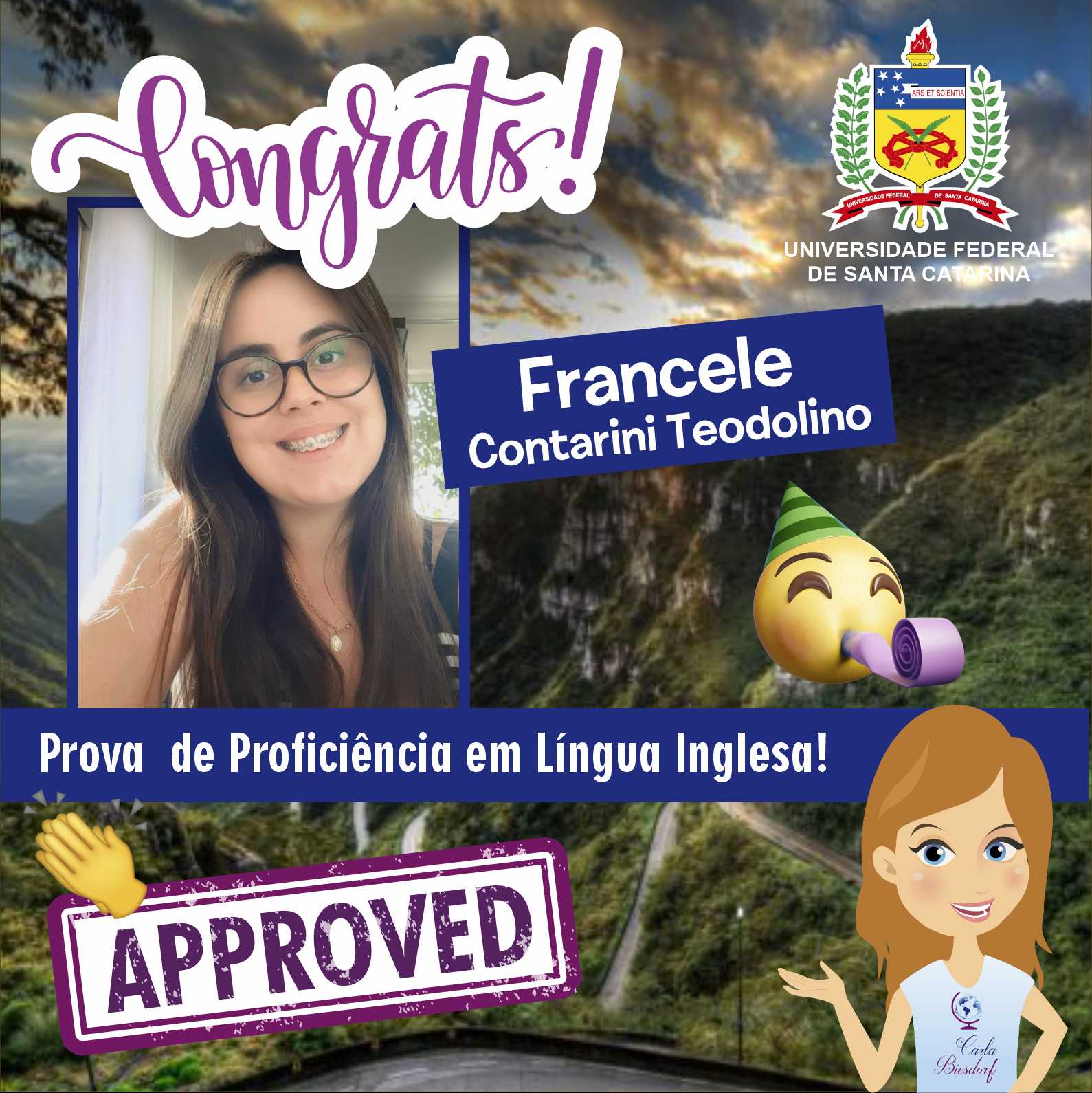 Ensino Inglês há 20 anos. No ensino fundamental realizei intercâmbio em uma escola americana na Tailândia. Já no ensino médio o intercâmbio foi em Londres, na Inglaterra. Na Graduação fui bolsista Erasmus Mundus na Grécia e premiada pela Mitacs com bolsa de estudos no Canadá. Lá fui convidada para estudar o Mestrado com bolsa de estudos integral. Por esse motivo sou também consultora de intercâmbio, auxiliando candidatos com suas cartas de motivação e análise de currículo. Conheço a China, Cingapura, África do Sul, Alemanha, Israel, Palestina, França e tenho paixão por viajar!