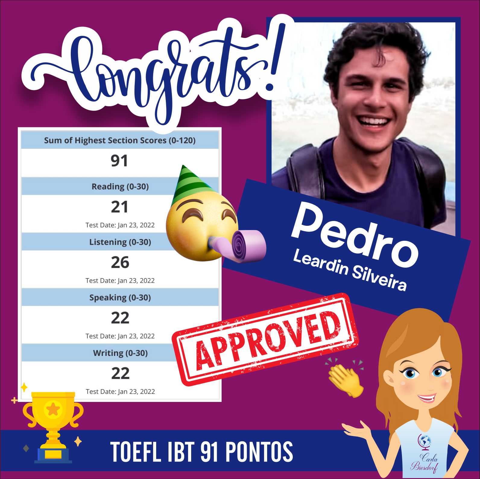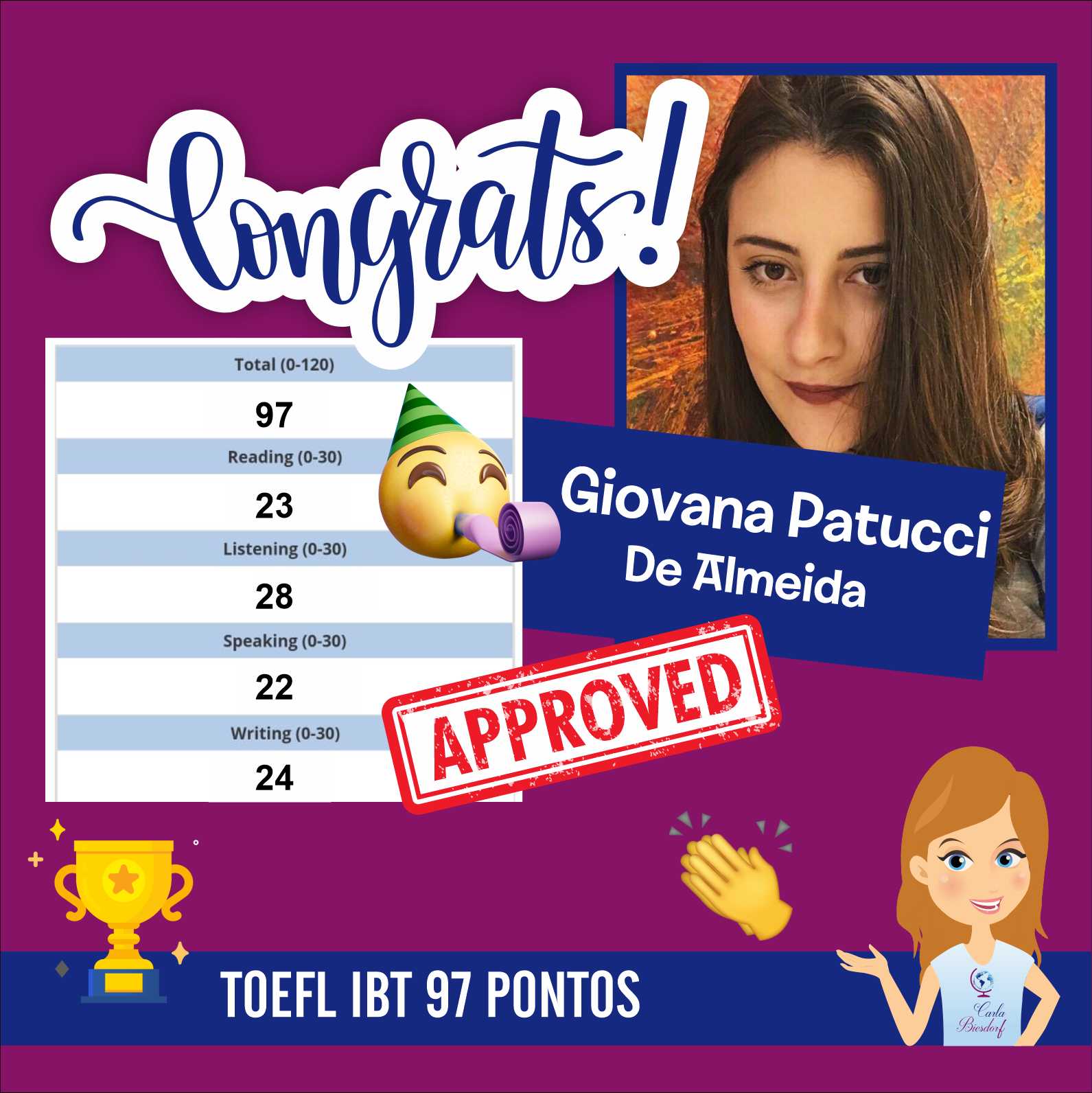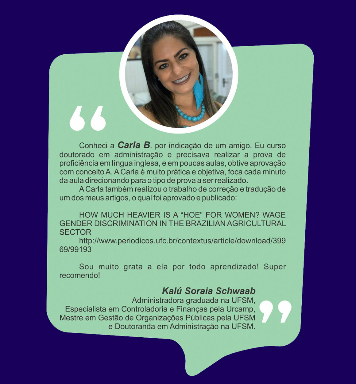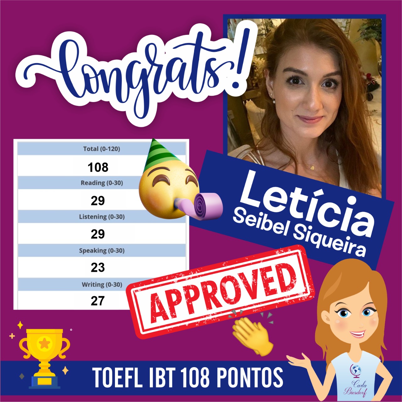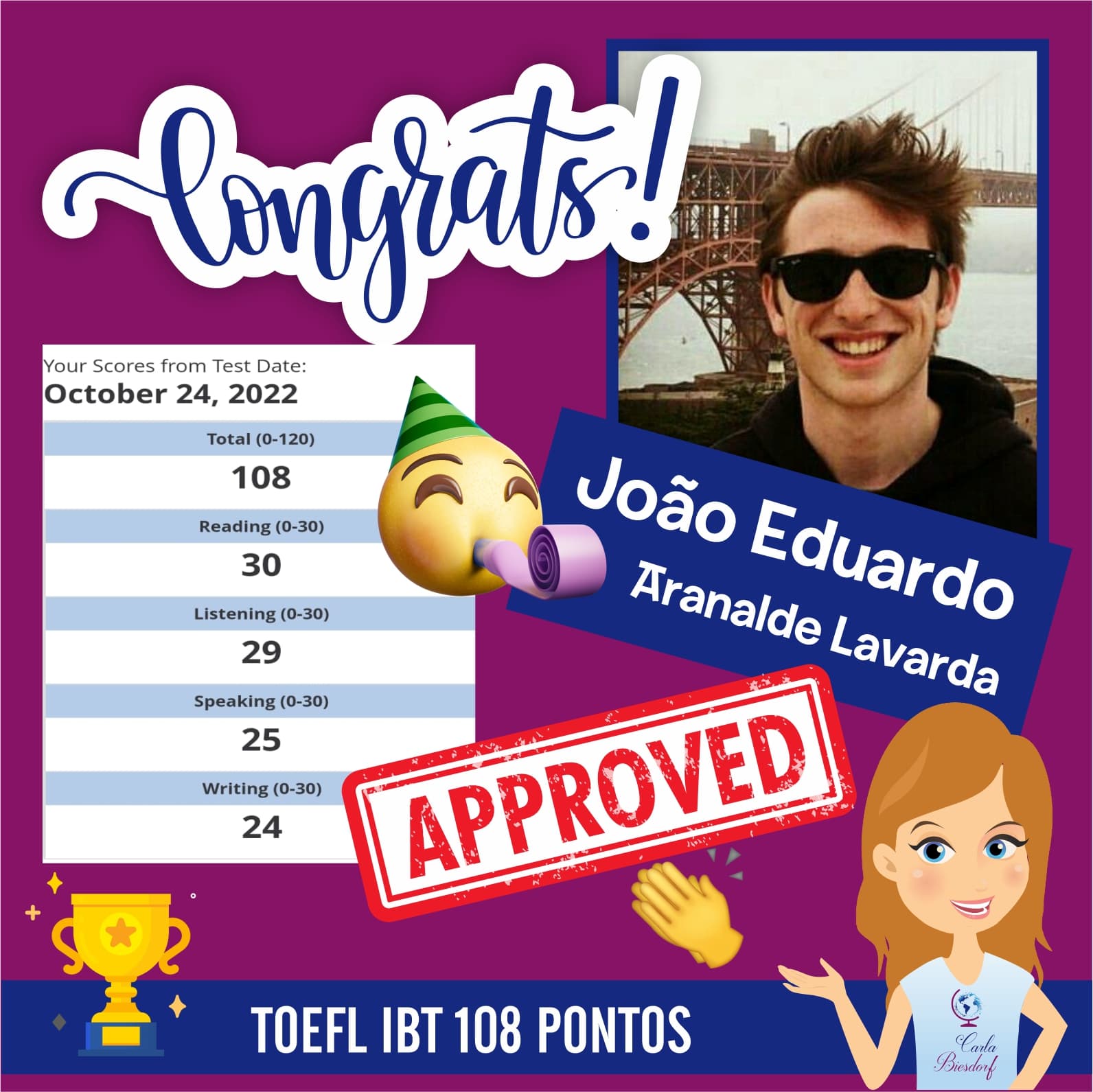 Ensino Inglês há 20 anos. No ensino fundamental realizei intercâmbio em uma escola americana na Tailândia. Já no ensino médio o intercâmbio foi em Londres, na Inglaterra. Na Graduação fui bolsista Erasmus Mundus na Grécia e premiada pela Mitacs com bolsa de estudos no Canadá. Lá fui convidada para estudar o Mestrado com bolsa de estudos integral. Por esse motivo sou também consultora de intercâmbio, auxiliando candidatos com suas cartas de motivação e análise de currículo. Conheço a China, Cingapura, África do Sul, Alemanha, Israel, Palestina, França e tenho paixão por viajar!