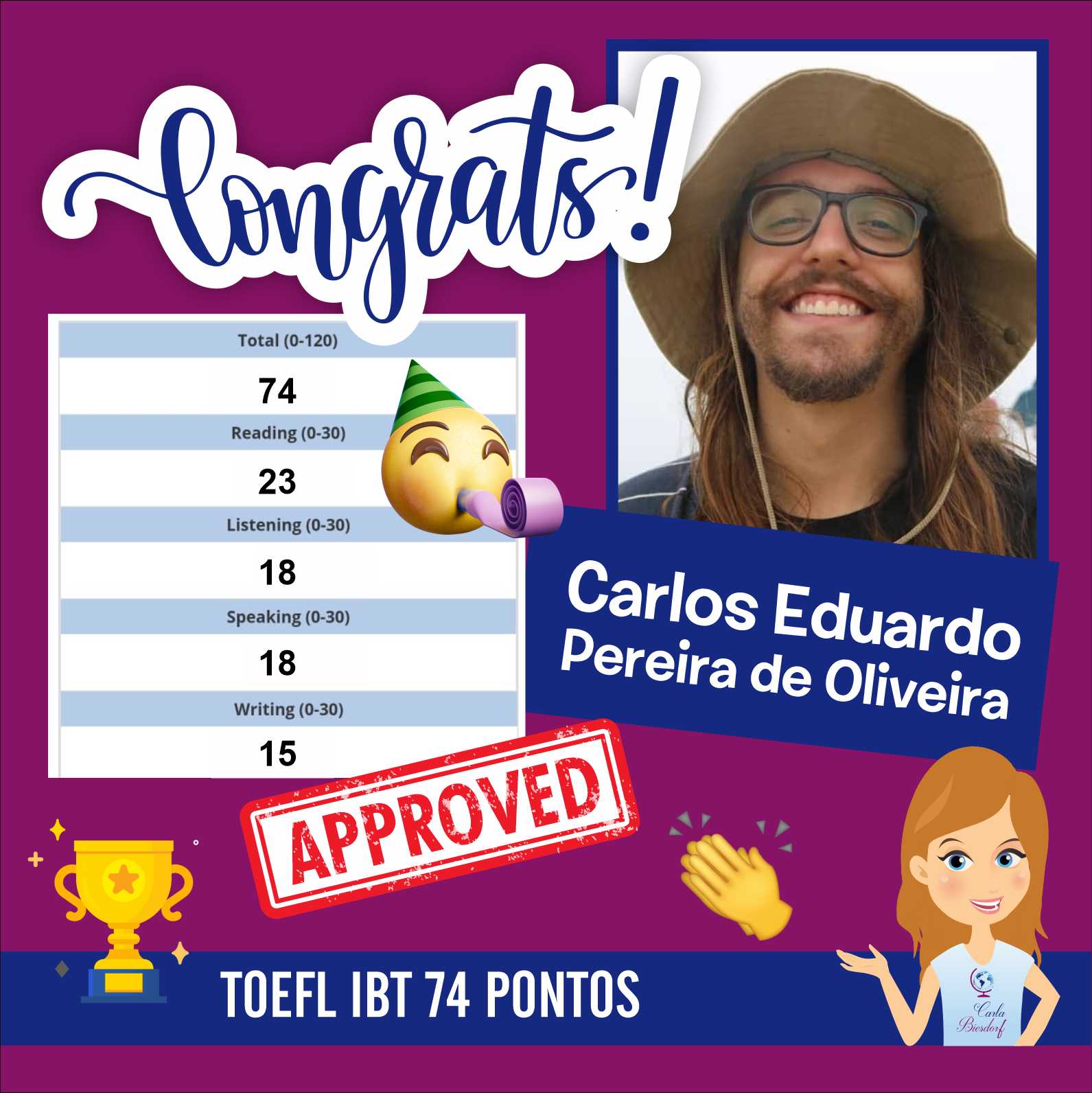 De forma eficaz, efetiva com preço acessível e convidativo, mais que um presencial. 95% dos meus alunos fazem meu curso preparatório TOEFL ou IELTS online pela câmera do Whatsapp, Facebook ou Skype. Estudantes do Rio de Janeiro (RJ), Belo Horizonte (BH), Porto Alegre (PA), Manaus, Curitiba, Brasília, Campinas, Florianópolis, Recife, Ribeirão Preto, Salvador, Belém, São Paulo, entre outros cidades do Brasil foram bem sucedidos ganhando a pontuação necessária na prova de TOEFL ou IELTS.